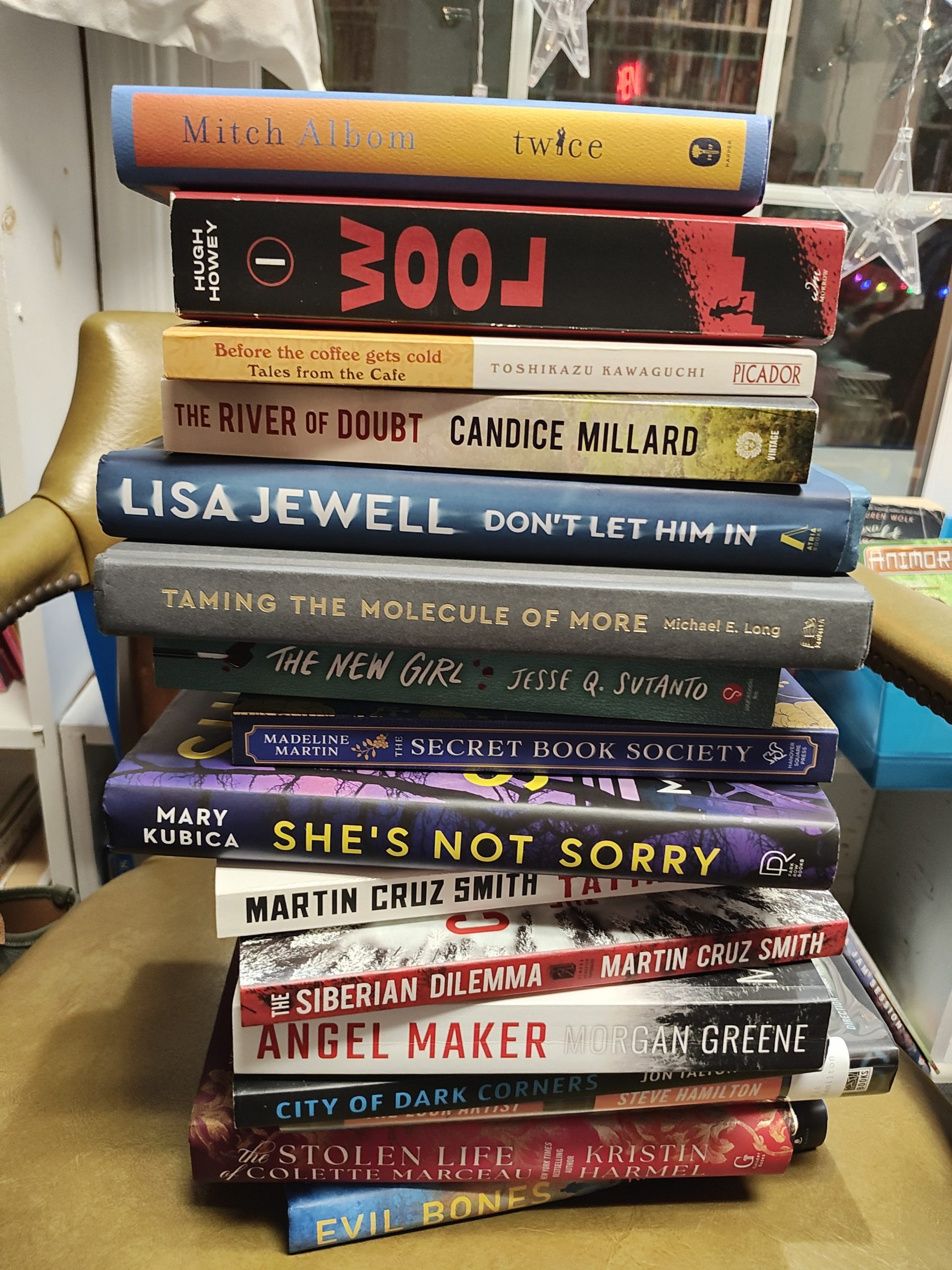 I read When I Kill You by B.A. Parris, The New Girl by Jesse Q. Sutanto (Shana is borrowing) and Twice by Mitch Albom (Christiana is borrowing.)