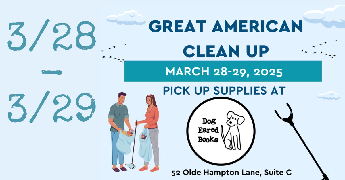 Pick up supplies at Dog Eared Books Friday or Saturday 11:00 - 5:00 (Gloves, grabber, and bags) Keep Hampton clean and beautiful!