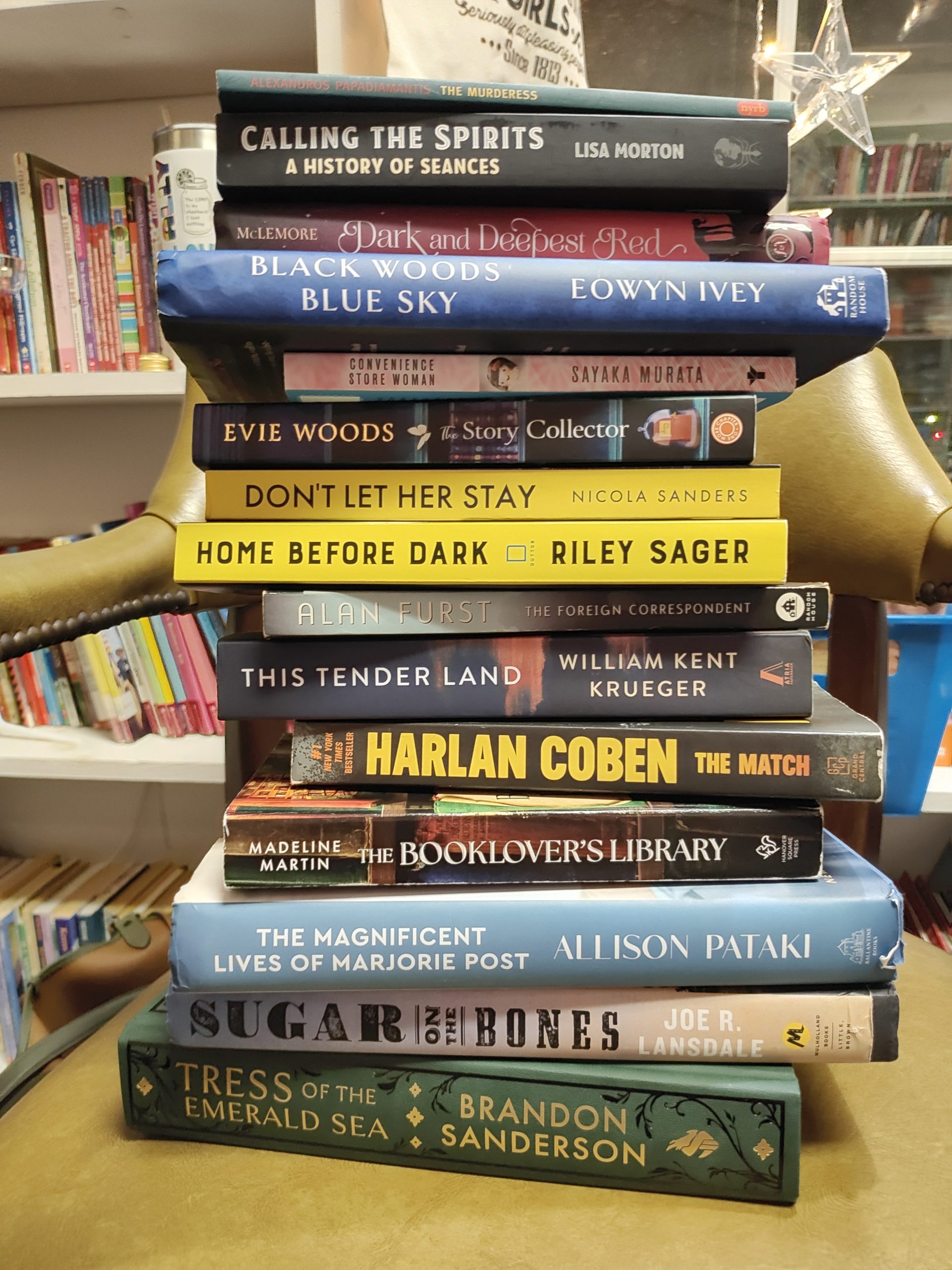 I read Christiana’s pick from last month, Don’t Let Her Stay by Nicola Sanders, along with Home Before Dark by Riley Sager, The Story Collector by Evie Woods, and Convenience Store Woman by Sayaka Murata. (Christiana is borrowing)