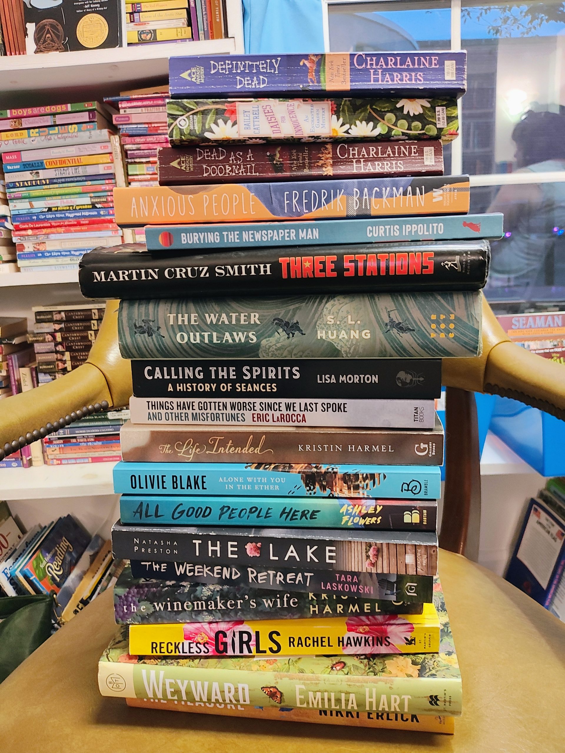 I read The Lake by Natasha Preston, (Shana is borrowing it) and Things Have Gotten Worse Since We Last Spoke and Other Misfortunes by Eric LaRocca (Matt is borrowing it.) I also enjoyed The Measure by Nikki Erlick and All Good People Here by Ashley Flowers (Mariya is borrowing those.) I can’t wait to hear what you think about The Measure. I also enjoyed Alone With You in the Either by Olivie Blake.