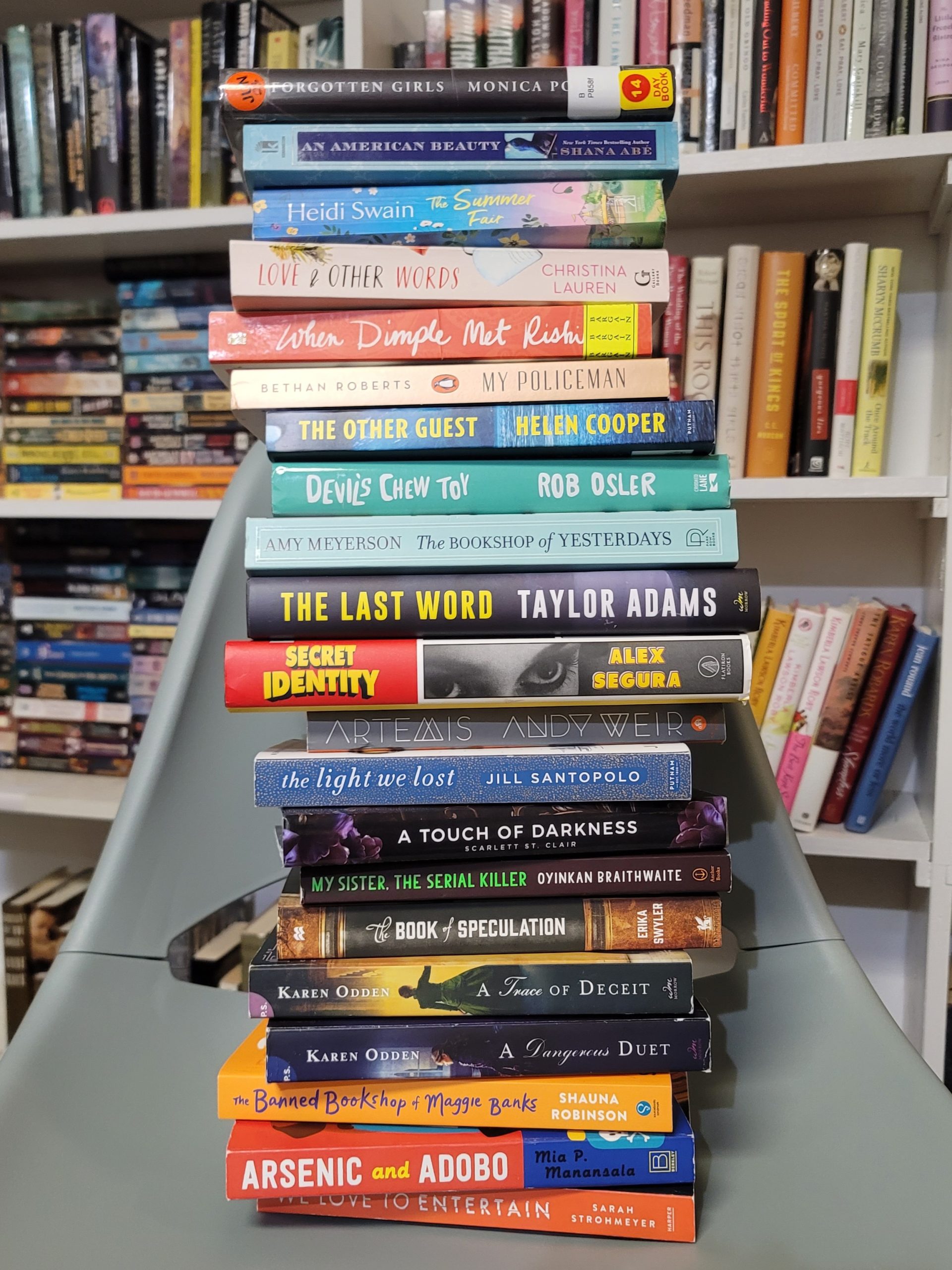 Shana read The Couple at Number Nine by Claire Douglas, Love in the Time of Serial Killers by Alicia Thompson, and Dirty Thirty by Janet Evanovich. I’m borrowing The Coworker by Freida McFadden.
